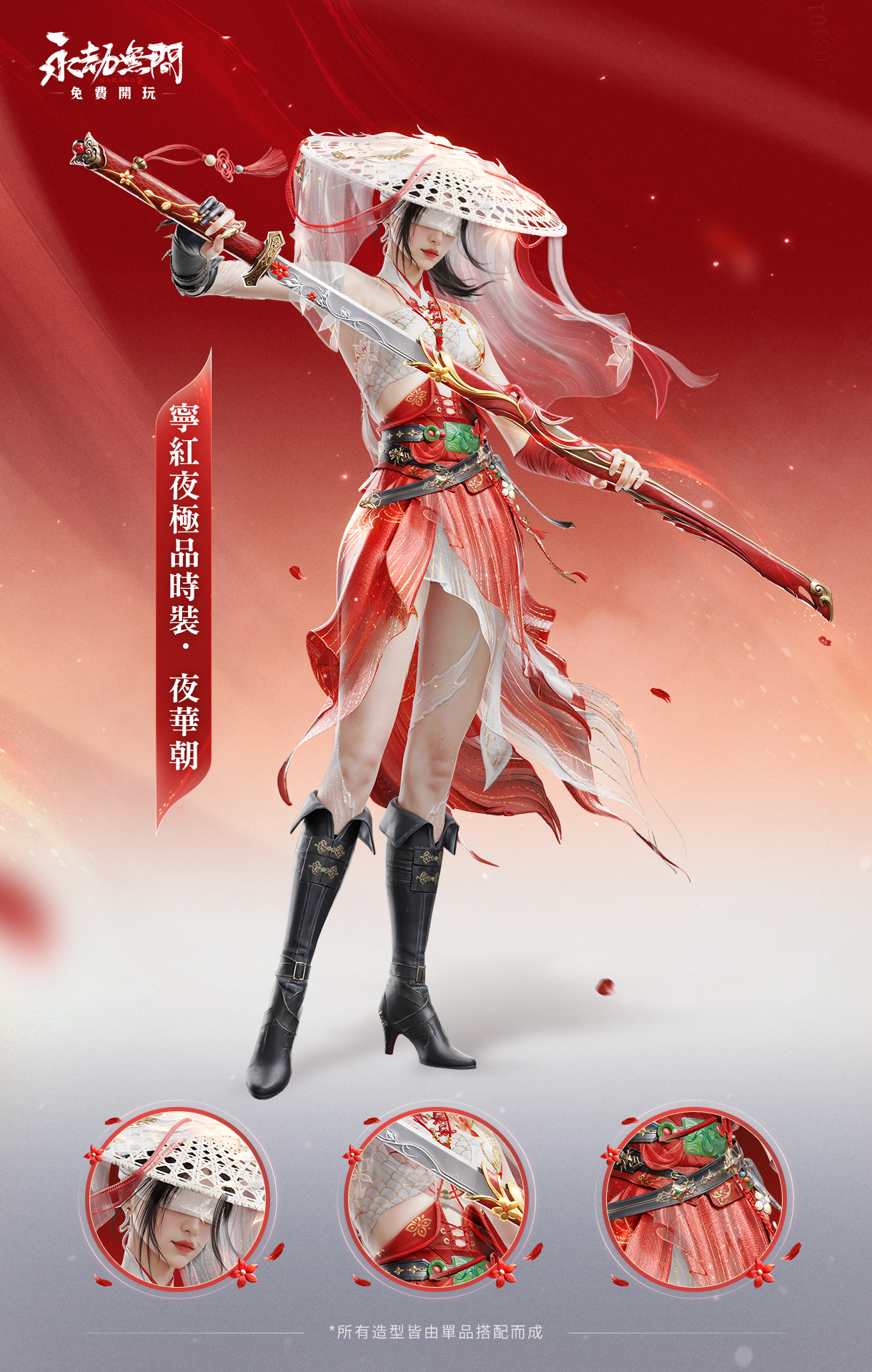 全新常駐寶箱-錦麟寶囊震撼登場!手起劍落,嫁娘之美如紅花綻放,揭開全新雙型時尚的神秘面紗。其中包含耀眼的寧紅夜神品時裝【赤皓新囍】與神祕的胡為神品時裝【監兵凶神】,還有斬馬刀神品外觀【飛將戟】、火砲神品外觀【天罰】等華麗獎勵。這是《永劫無間》首套雙型態時裝,穿上【赤皓新囍】即可一次擁有紅與白的雙重風采。玩家們,準備好迎接這場時裝革命了嗎?