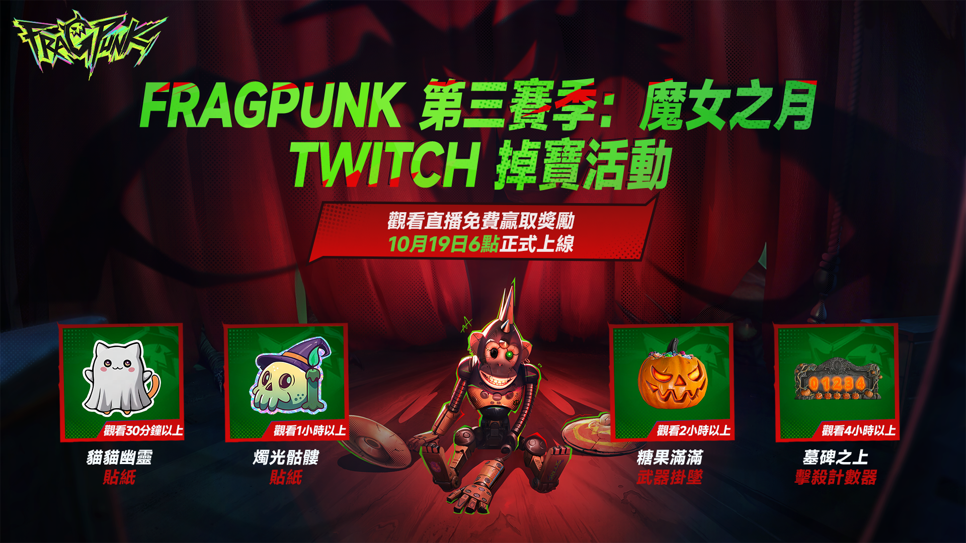 此外,為響應第三賽季「魔女之夜」主題,《FragPunk》同步開啟 Twitch 掉寶活動。