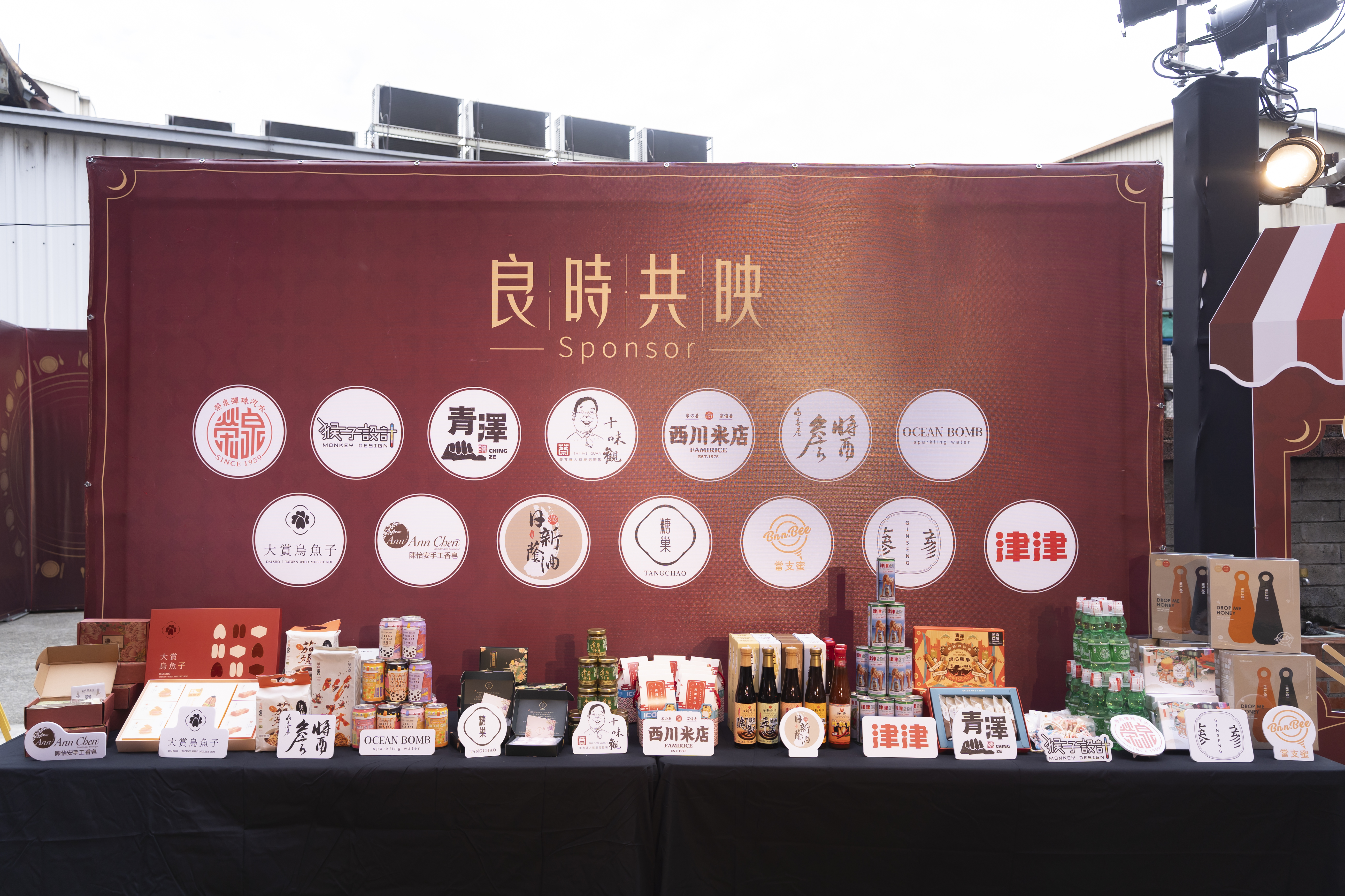 圖七、感謝本次合作廠商_十味觀、糖巢龍鬚糖、日新蔭油、西川米店、青澤食品、BnnBee當支蜜、AnnChen陳怡安手工皂、詹醬、猴子設計、津津蘆筍汁、蔘利商號、大賞烏魚子、榮泉彈珠汽水、OCEAN BOMB,提供豐富在地化商品。