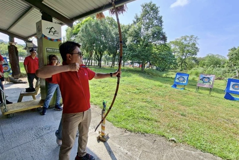 圖三、艾肯娛樂集團夥伴體驗鄒族傳統射箭。