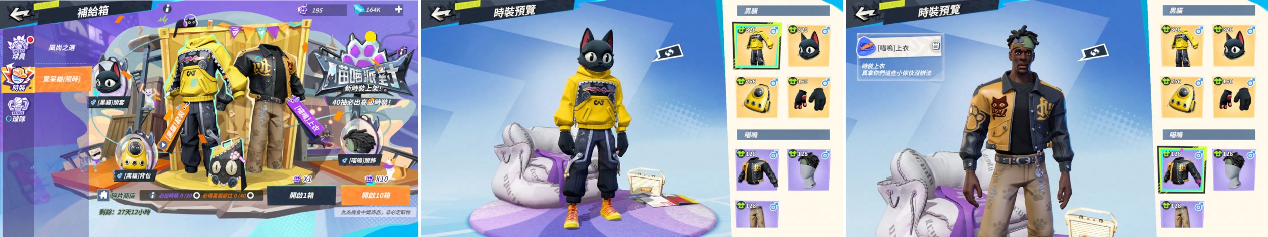 圖三、四、五:【喵喵派對】限時補給箱及又酷又可愛的貓貓時裝