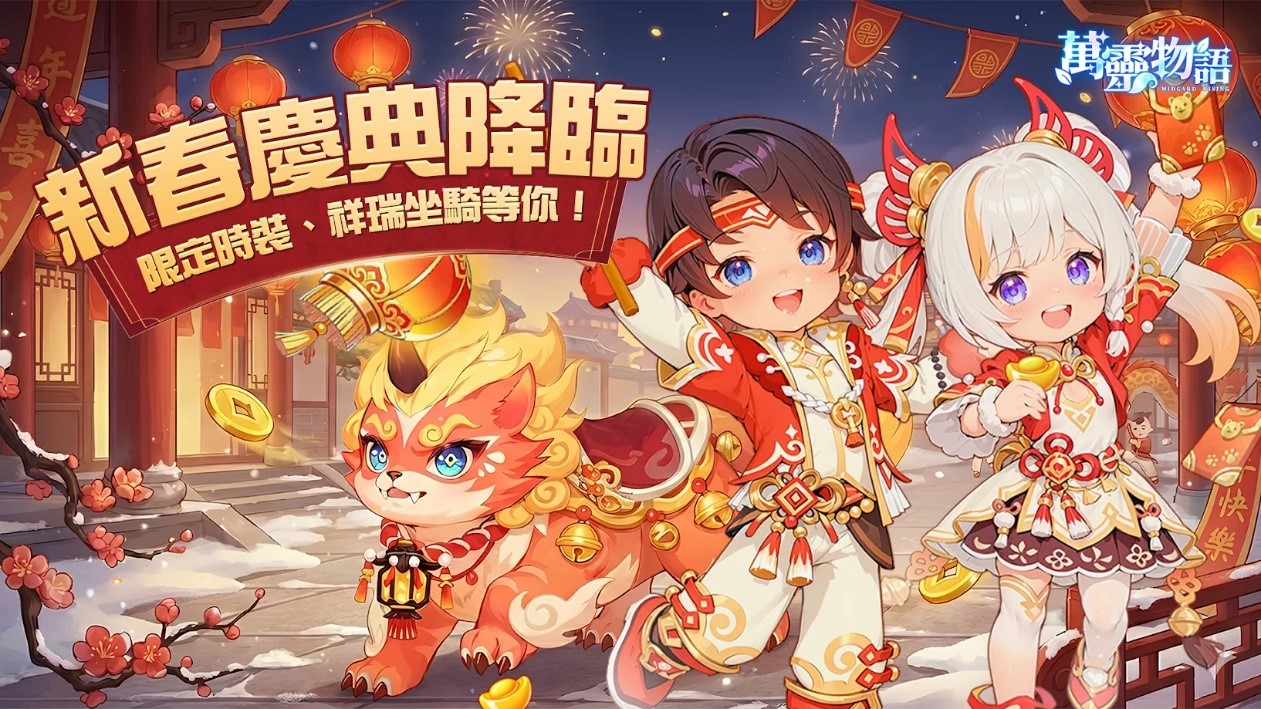 萌寵系休閒 MMORPG手遊《萬靈物語》,將於農曆春節期間推出全新節慶活動「萬家燈火」,邀請玩家在神樹世界中感受最溫馨熱鬧的年節氛圍。本次活動推出讓人煥然一新的喜氣「時裝套組」,並同步釋出霸氣又萌力十足的「年獸坐騎」以及福氣滿滿的「翅膀」與「背飾」,讓玩家為角色換上最應景的拜年穿搭,在璀璨燈火中展現獨特風采。無論是與好友相聚組團合照,或是攜手萌寵挑戰副本,全新外觀都將讓你成為最耀眼的焦點。
