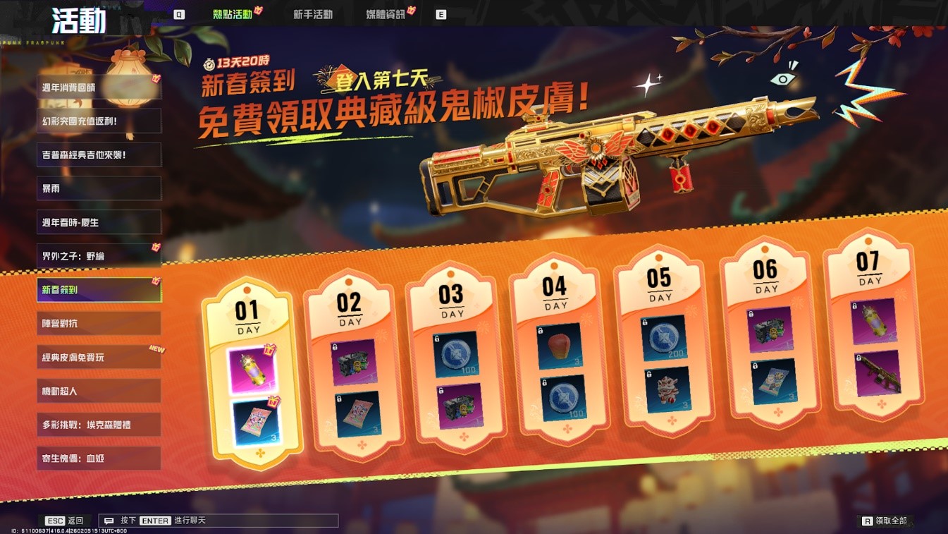 ● 【新春簽到】活動,每日上線簽到即可獲得典藏武器外觀、奇珍獎罐等好禮。