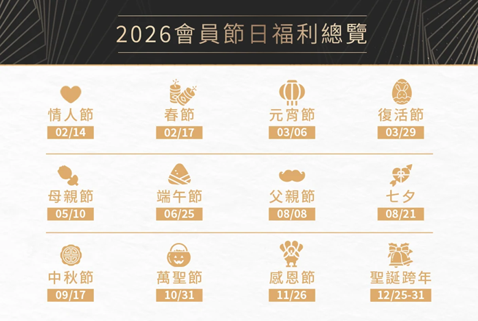 相關福利內容將依年度不同時段陸續展開,並透過主題化設計串聯遊戲內外資源,使會員回饋不再侷限於單一遊戲體驗,而是延伸至更完整的娛樂生態,打造長期且具延續性的會員價值。本次總覽以視覺化方式呈現年度節日與福利安排,協助會員快速掌握全年回饋節奏,同時也展現平台持續擴張娛樂版圖、深化會員經營的策略方向。
