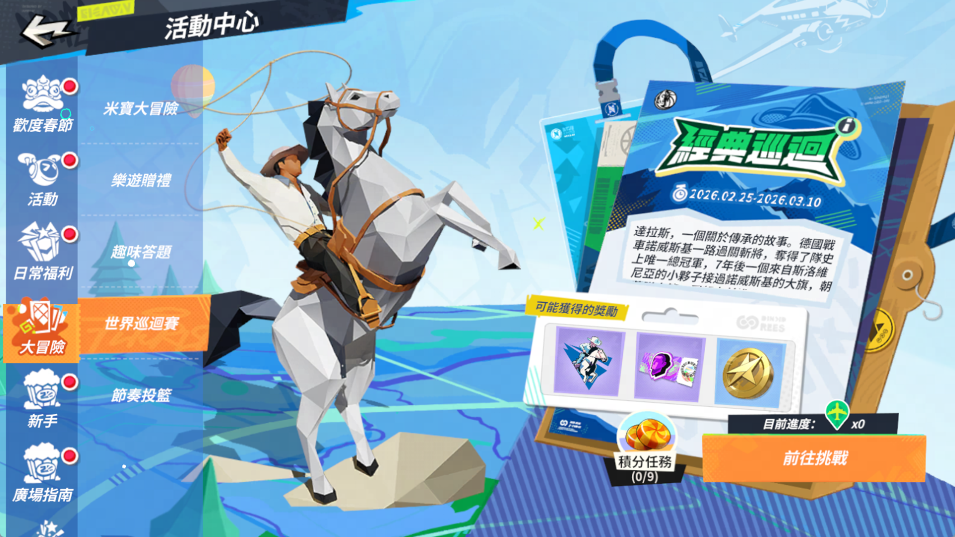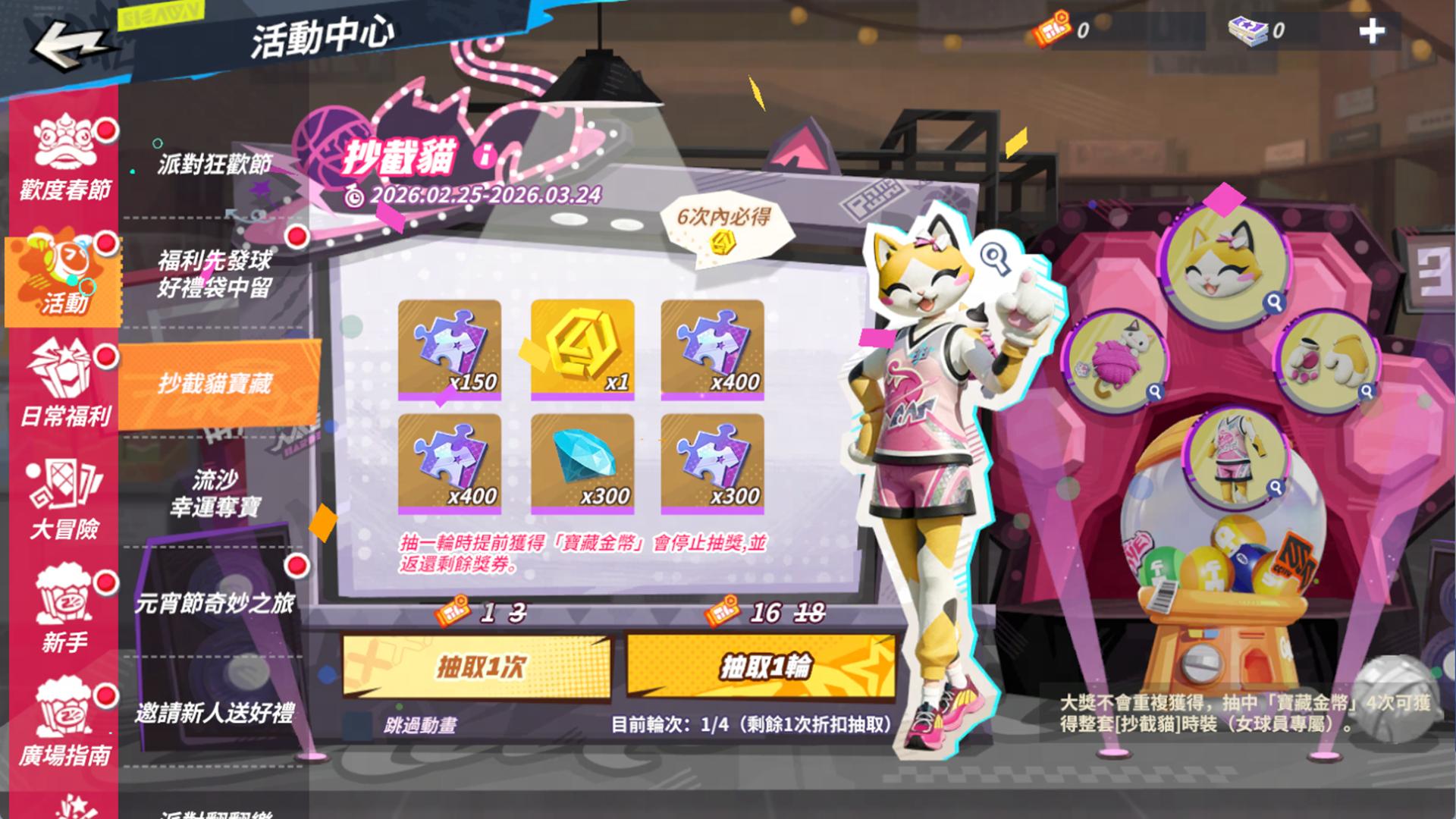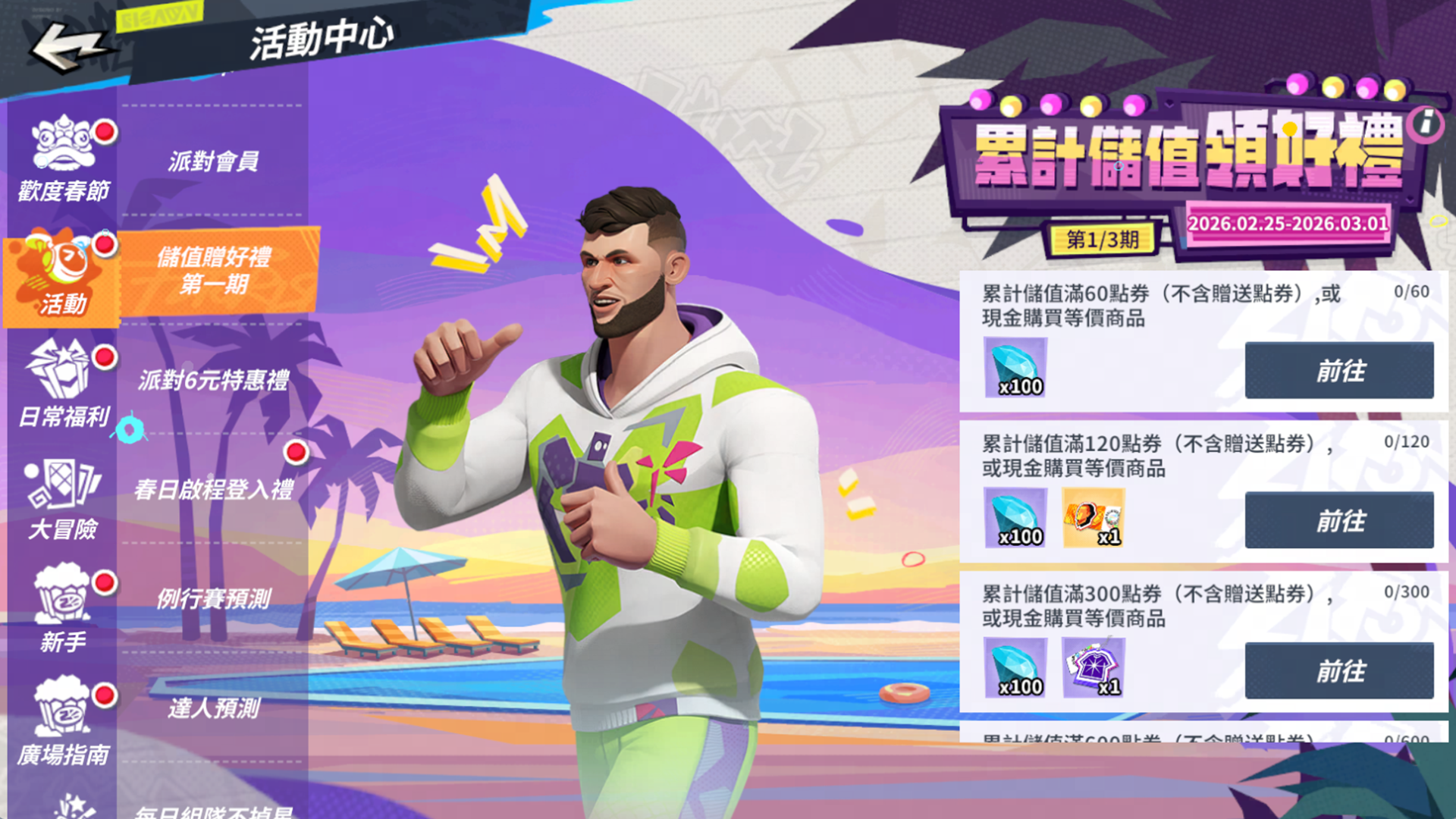 為了慶祝改版與元宵佳節,官方規劃了一系列豐富活動。首先是「元宵節奇妙之旅」,街球手只要完成指定任務,即可免費獲得限定服裝「條紋衫」及多樣好禮;緊接著「春日啟程登入禮」活動,街球手只需每日登入遊戲,就能輕鬆領取潮人券、鑽石等實用虛寶。此外,廣受好評的「派對翻翻樂」、「樂遊贈禮」、「世界巡迴賽」以及考驗手感的「節奏投籃挑戰」等常規活動也將回歸開放,讓街球手每天上線都有新鮮事。