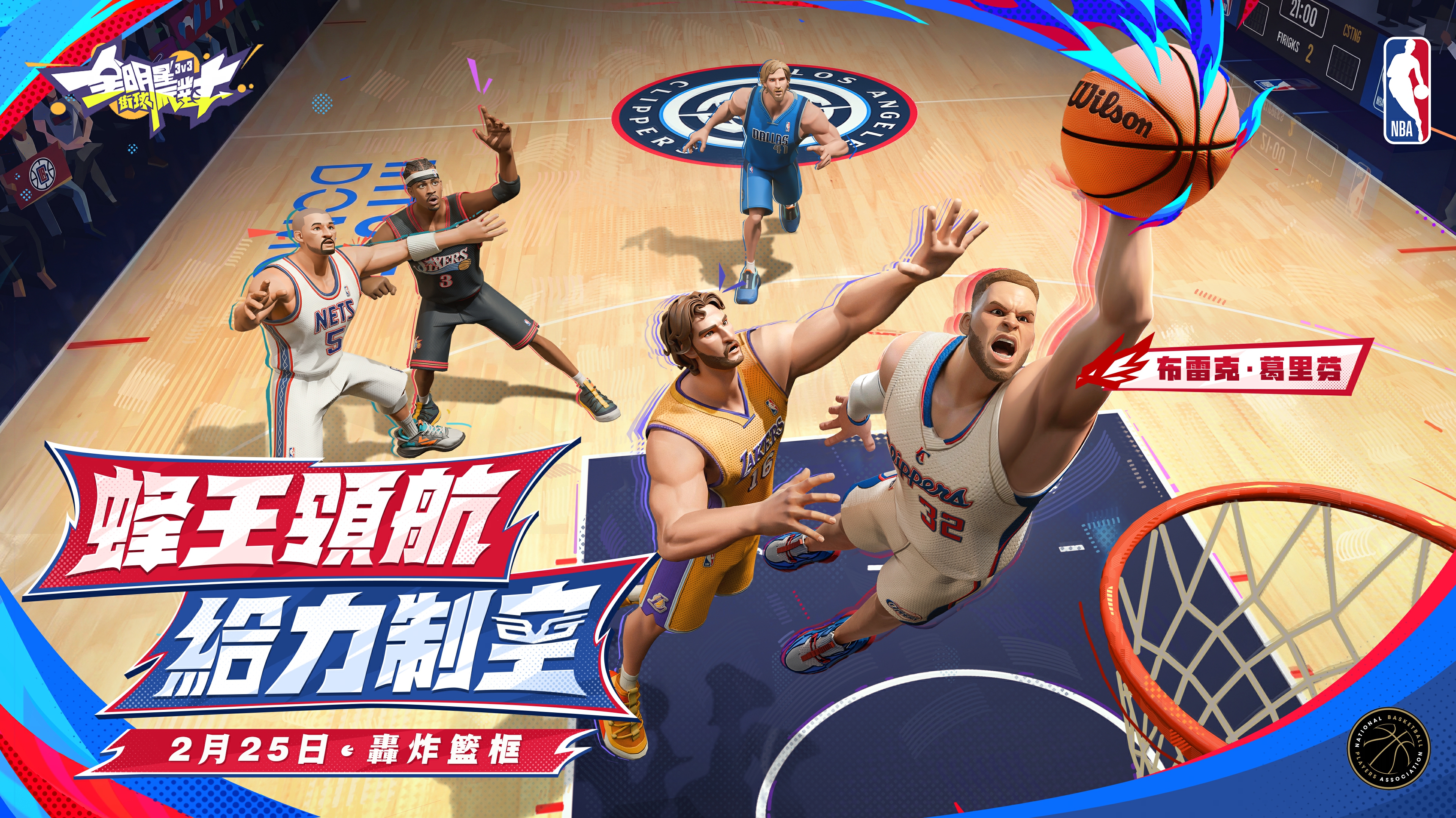 由艾肯娛樂代理、網易遊戲開發的NBA 正版授權的 3V3 街頭籃球手遊《全明星街球派對》今日迎來「蜂王領航,給力制空」全新版本。本次更新由定義了暴力美學的「白魔獸」葛里芬(Blake Griffin)領銜,攜手獲得全面升級的「蜂王」保羅(Chris Paul)與公鹿隊防守中樞透納(Myles Turner)一同降臨街頭,宣告制空權爭奪戰正式開打。除了球星陣容的豪華擴充,遊戲內同步推出結合音樂律動的「舞動全場」系列時裝與全新球場組件,並開放「巨星試煉」與「親密度火花」等深度玩法。更大幅加強老街球手回流福利,搭配元宵節慶活動,邀請全體街球手在熱鬧的節拍中,重返街頭見證傳奇。