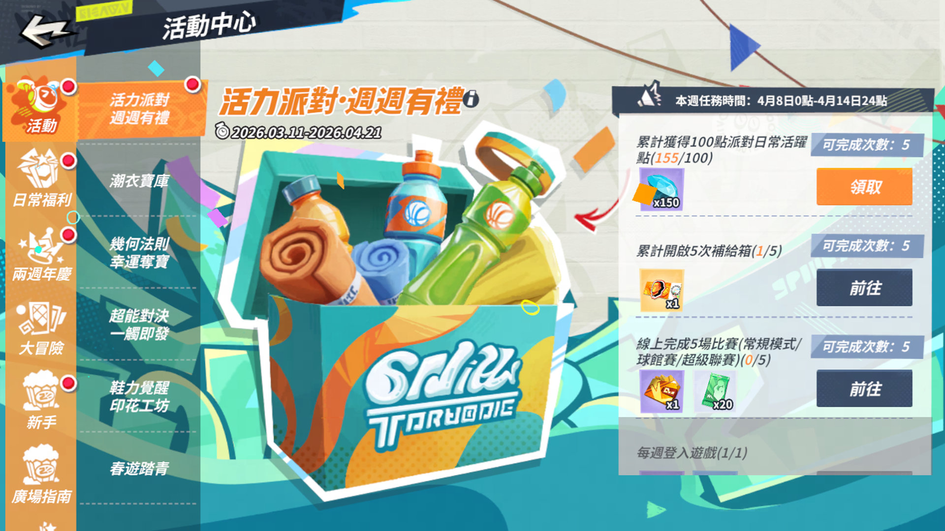 隨著春日降臨,「活力派對·週週有禮」活動將每週重置任務,持續派發巨星天賦卡自選包與潮人券。而「春暖花開」登入禮活動也相繼展開,街球手只需簡單登入即可領取招募券、鑽石等豐厚虛寶。此外,「世界巡迴賽」將帶領街球手回顧塞爾提克雙探花的登頂之路,體驗鐵血綠軍的傳奇篇章。